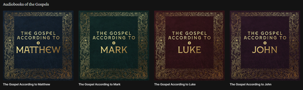 the Four Gospels read aloud, in the Douay-Rheims version (with more of the Bible to come — next, the book of Psalms)
