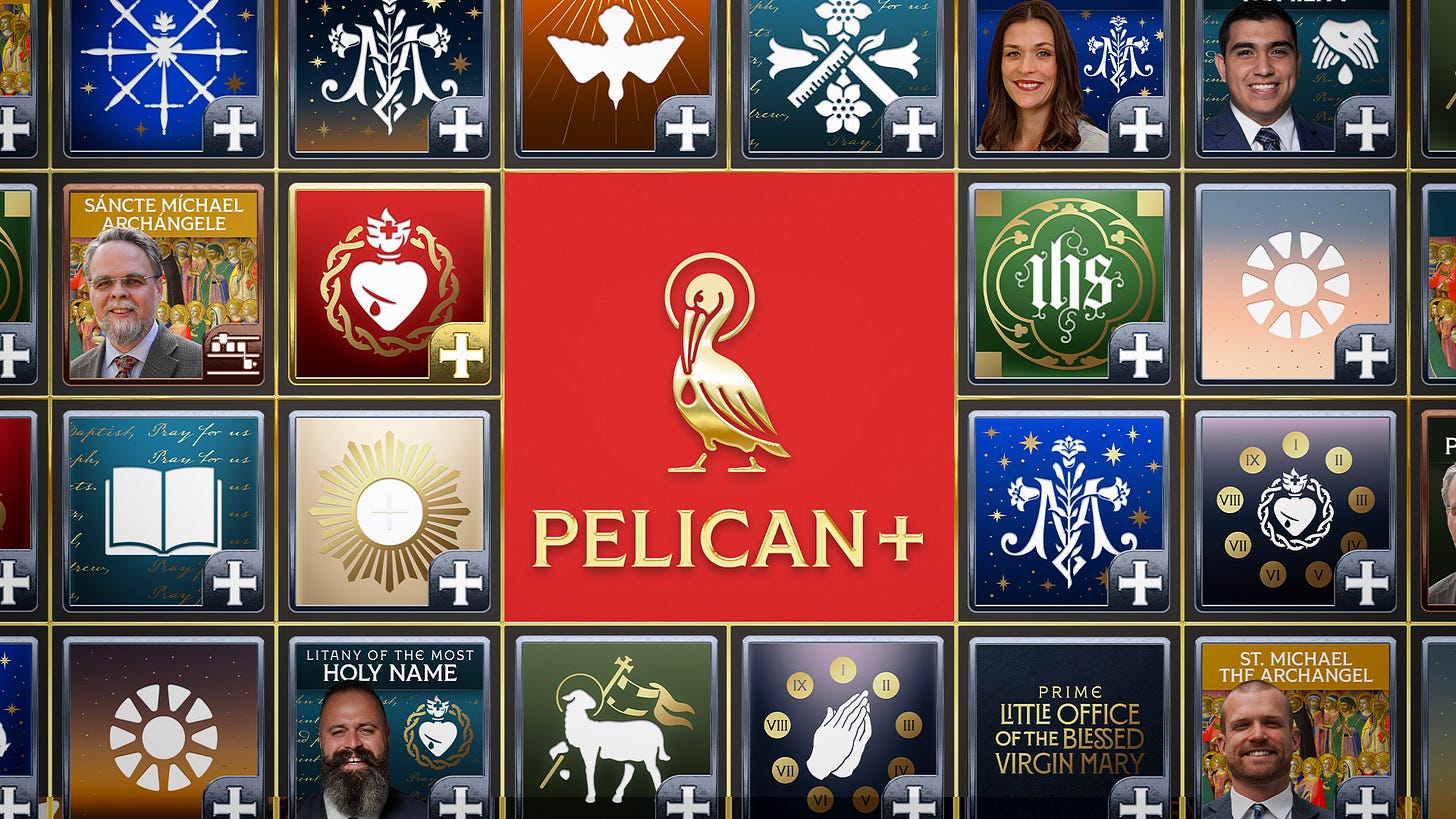 I strongly encourage you to head over and see for yourself what Pelican+ is building: a “digital cathedral” for Catholics all over the world — for men and women who love the Lord, His Mother, and the angels and saints, and who are open to using new means to follow the well-trodden paths of tradition as they seek the sanctification of their souls.