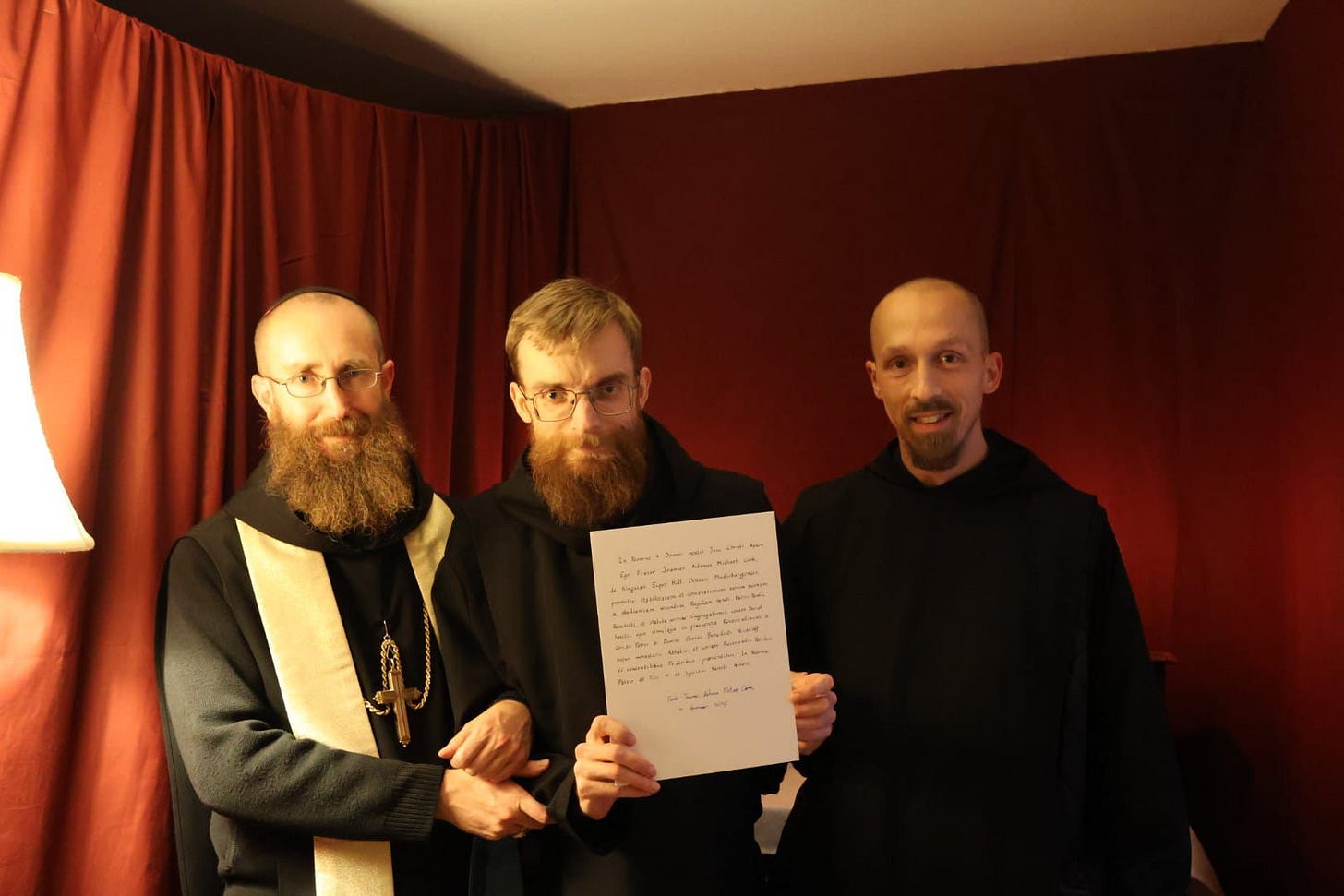 Br. John Aidan Cook was a man who tried his Benedictine vocation at Norcia and Pluscarden, and wasn’t able to continue due to various strains. He was diagnosed with an aggressive cancer and was advised that further treatment was pointless. Abbot Benedict of Norcia then visited him in Scotland and received his solemn vows as a monk when he could barely even stand. He offered his holy life to God for the salvation of souls, fortified by the sacraments and surrounded by the monks he loved. He is now buried at Pluscarden Abbey.
