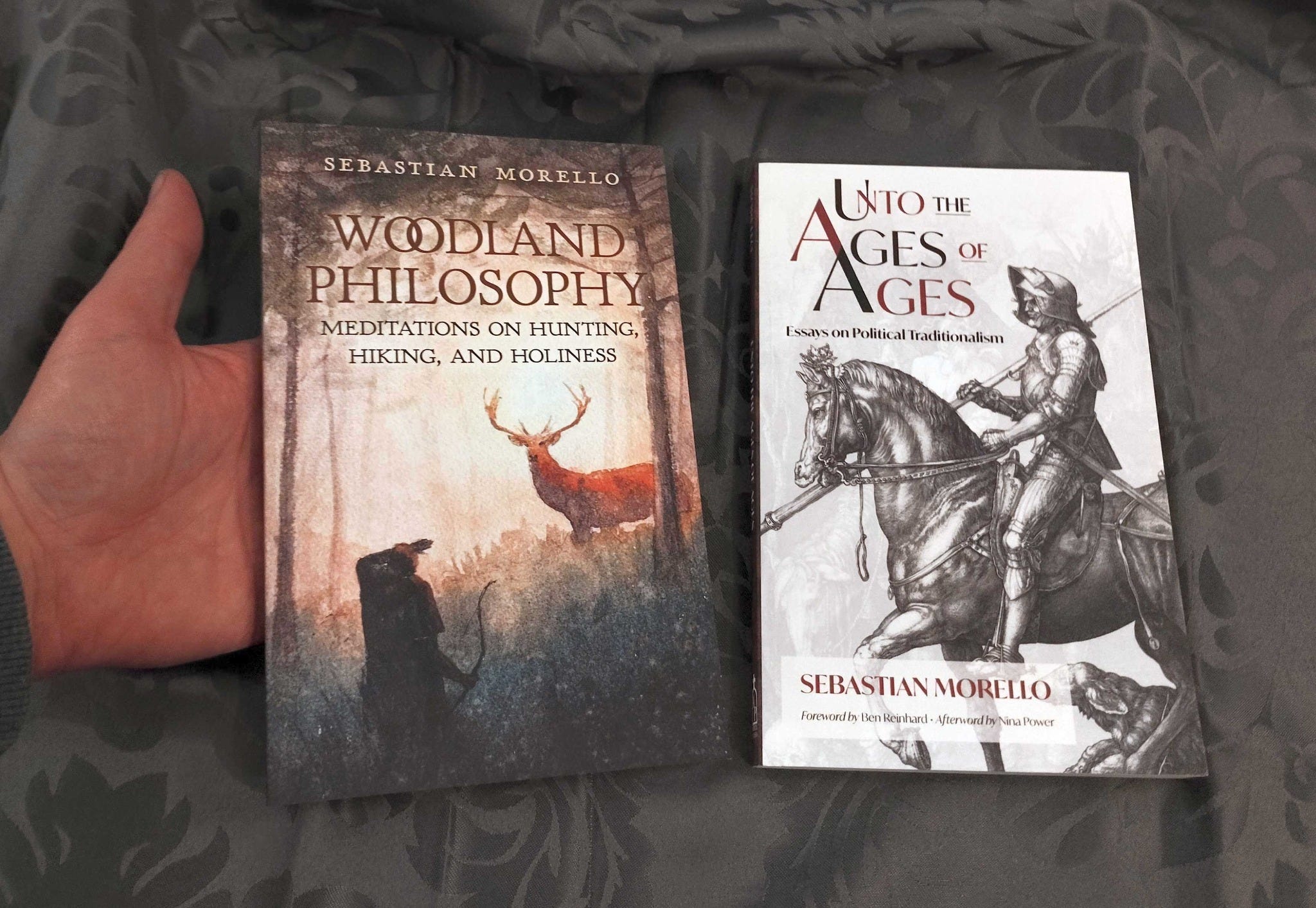 Speaking of Morello, I was very excited to get hold of his latest books: Unto the Ages of Ages: Essays on Political Traditionalism (Arouca) and Woodland Philosophy: Meditations on Hunting, Hiking, and Holiness (Angelico). As is my approach, too, Sebastian collects his best essays into thematic groupings, reworks them into a unity, and incorporates new material in the form of forewords, prefaces, afterwords, etc. I find him quite simply one of the most insightful and exhilarating Catholic authors now writing. No one who picks up one of his books is left unmoved or uninspired.