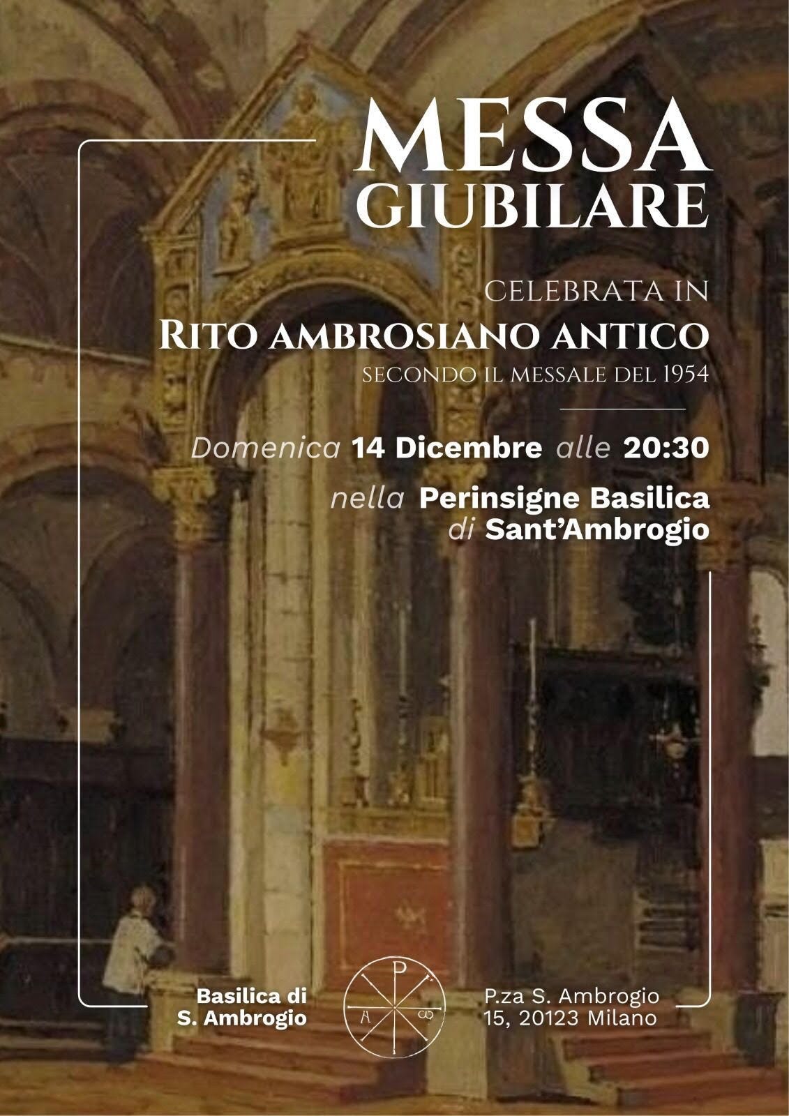 For the first time in almost 50 years, on Sunday, December 14, at 8:30 p.m., for the Jubilee Year, a Solemn High Mass according to the old Ambrosian rite (liturgical books from 1954) will be celebrated at the Basilica of Sant’Ambrogio in Milan, at the very tomb of St. Ambrose.