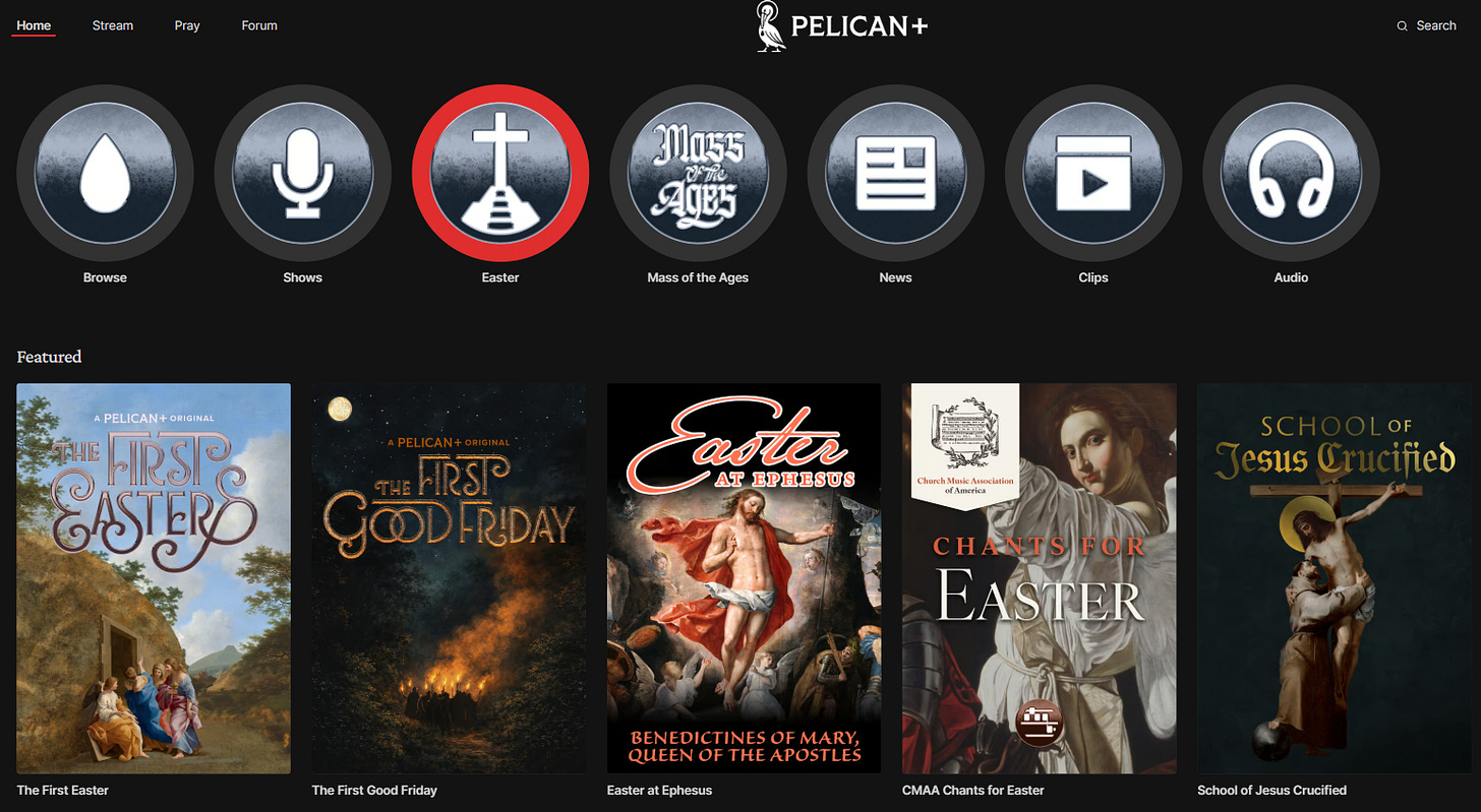 I believe that Pelican+ offers something unique — a singular combination of personalities, features, prayers, recordings, music, documentaries, family-friendly programs, and more — that are not to be found on Substack.