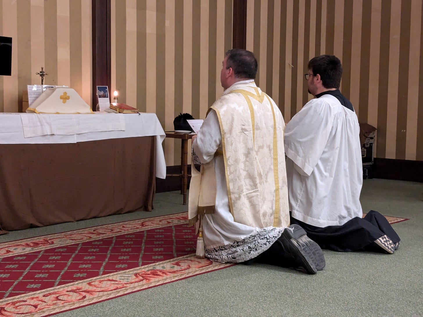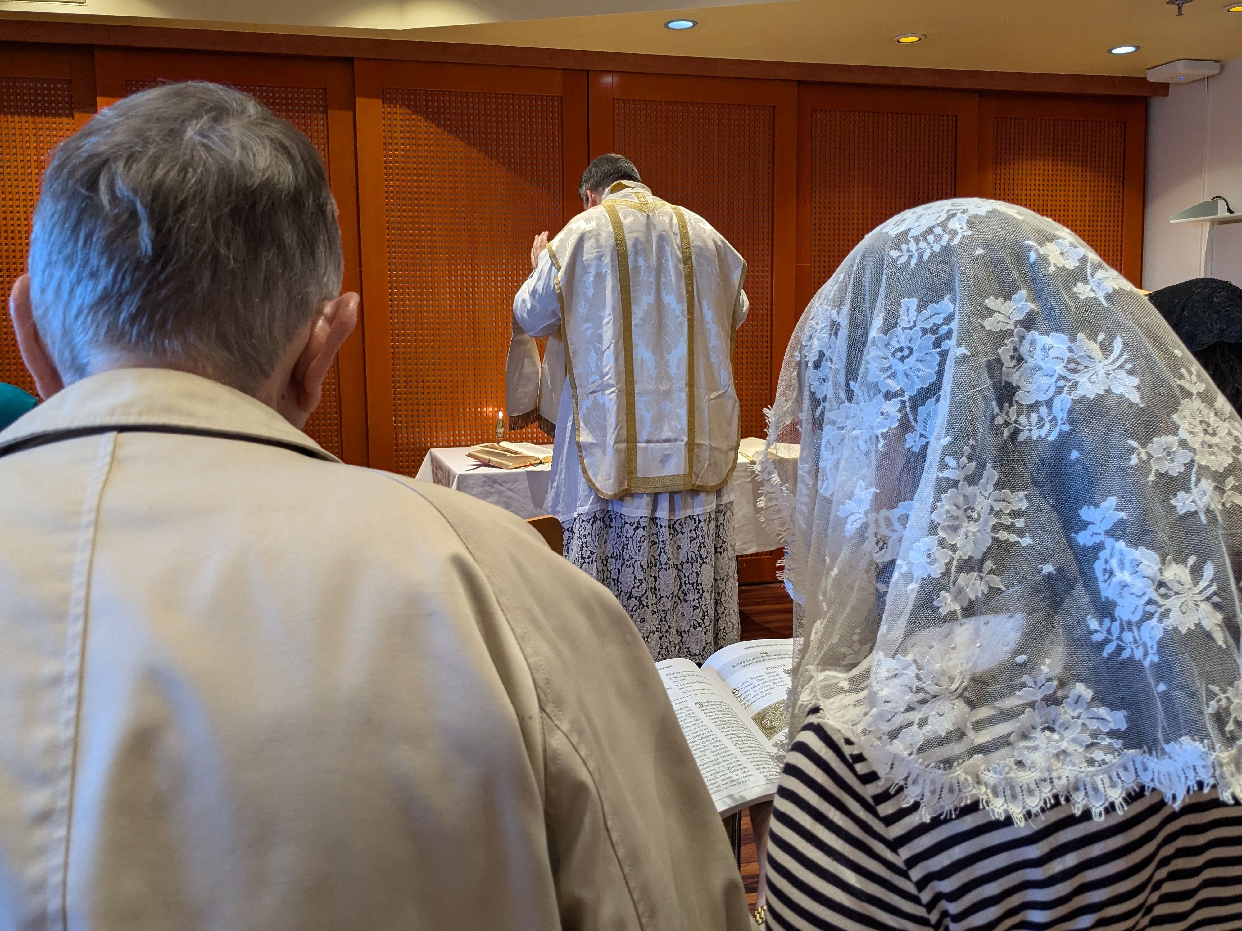 Yes, the church was a bit plain after the Greek monasteries, but it was a huge relief just to be in a church for Mass, as most of the time we had to make do with all-purpose rooms at hotels or on ship. In a way all its own, the TLM and the chant still took possession of those secular spaces and, for an hour, converted them into portals to eternity.
