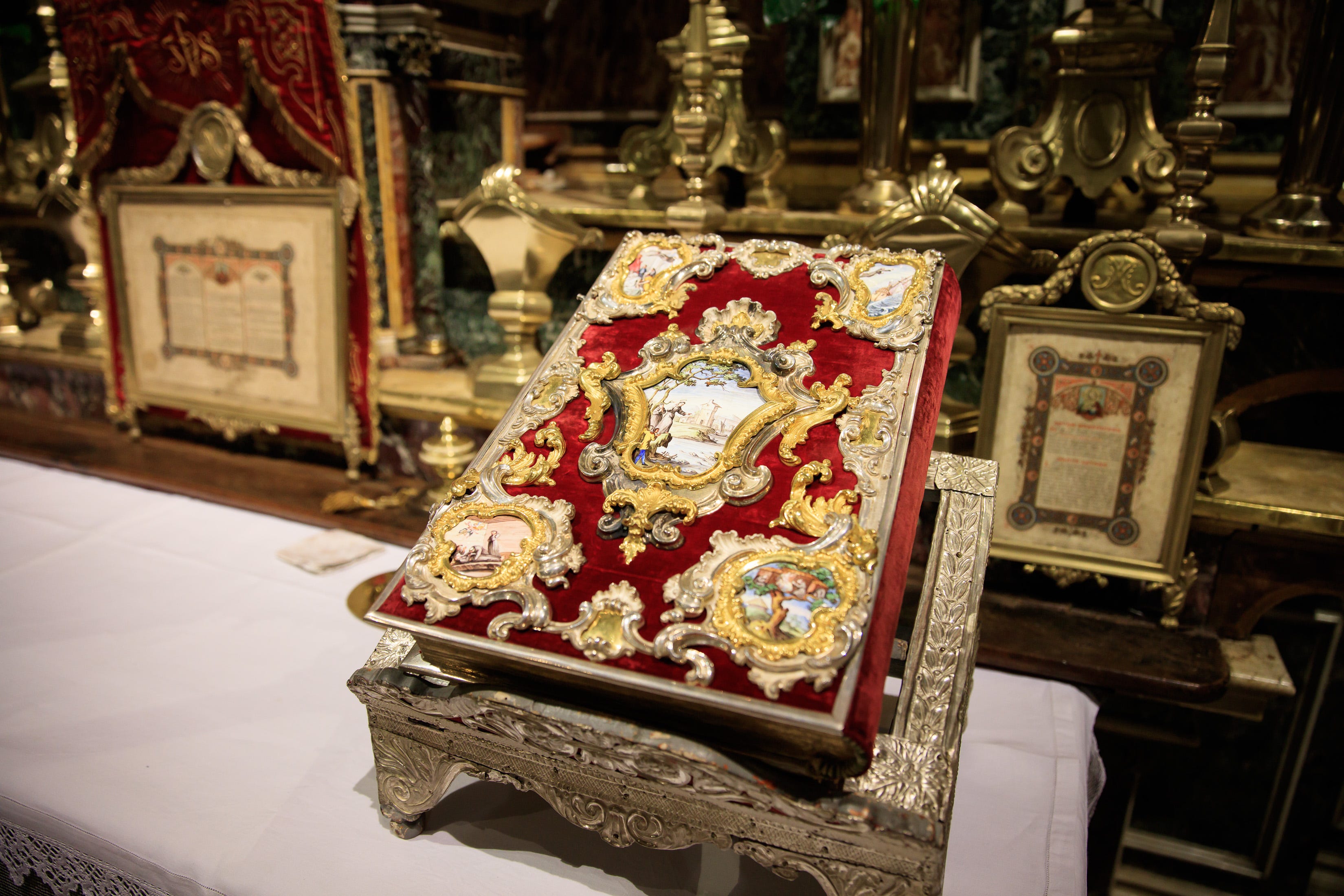 The sacred liturgy, too, holds the very words of God—indeed, astonishingly, the Mass holds God Himself, the Word made flesh. It is utterly inconsistent with its inner content that the outward form of it should be anything but glorious, majestic, beautiful, solemn, reverent. We should be able to judge this book by its resplendent cover, that is, the Mass by its appearances, musical, textual, ceremonial; we should be able to see the heart in the actions. We should not “miss the beauty of the face.”