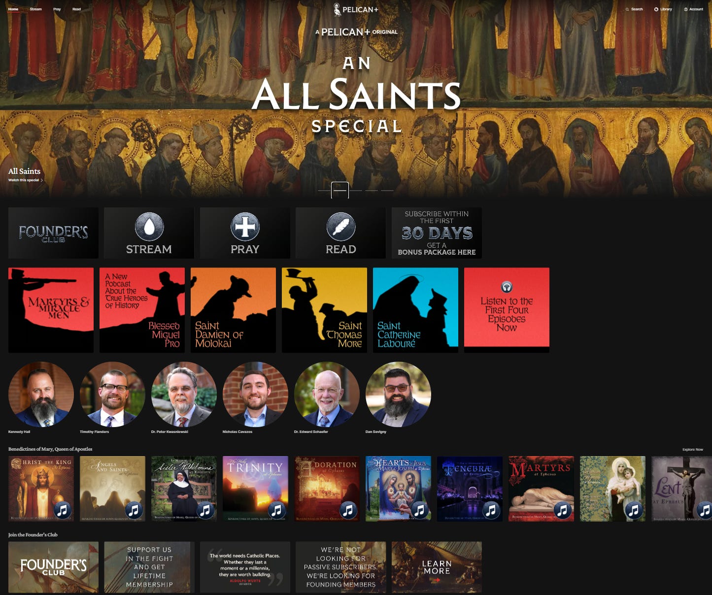 I don’t relate all of this to overwhelm you. Think of Pelican+ as an environment, like YouTube, Substack, Hallow, or the Daily Wire. Nobody watches, reads, or prays everything at these sites; they find what suits them and their families best.