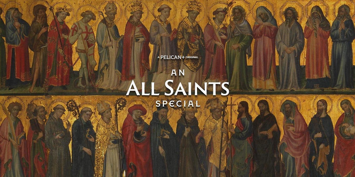 For this Octave of All Saints, we released a 25-minute video in which Pelican+ contributors share reflections on our favorite saints — how we discovered them (or, often, how they picked us), how they came to our aid, what we learned from them. It’s a thoughtful program, worth watching any time this week. (I talk about why I chose St. Paul as my confirmation saint, and the vow I made to St. Thomas Aquinas.)
