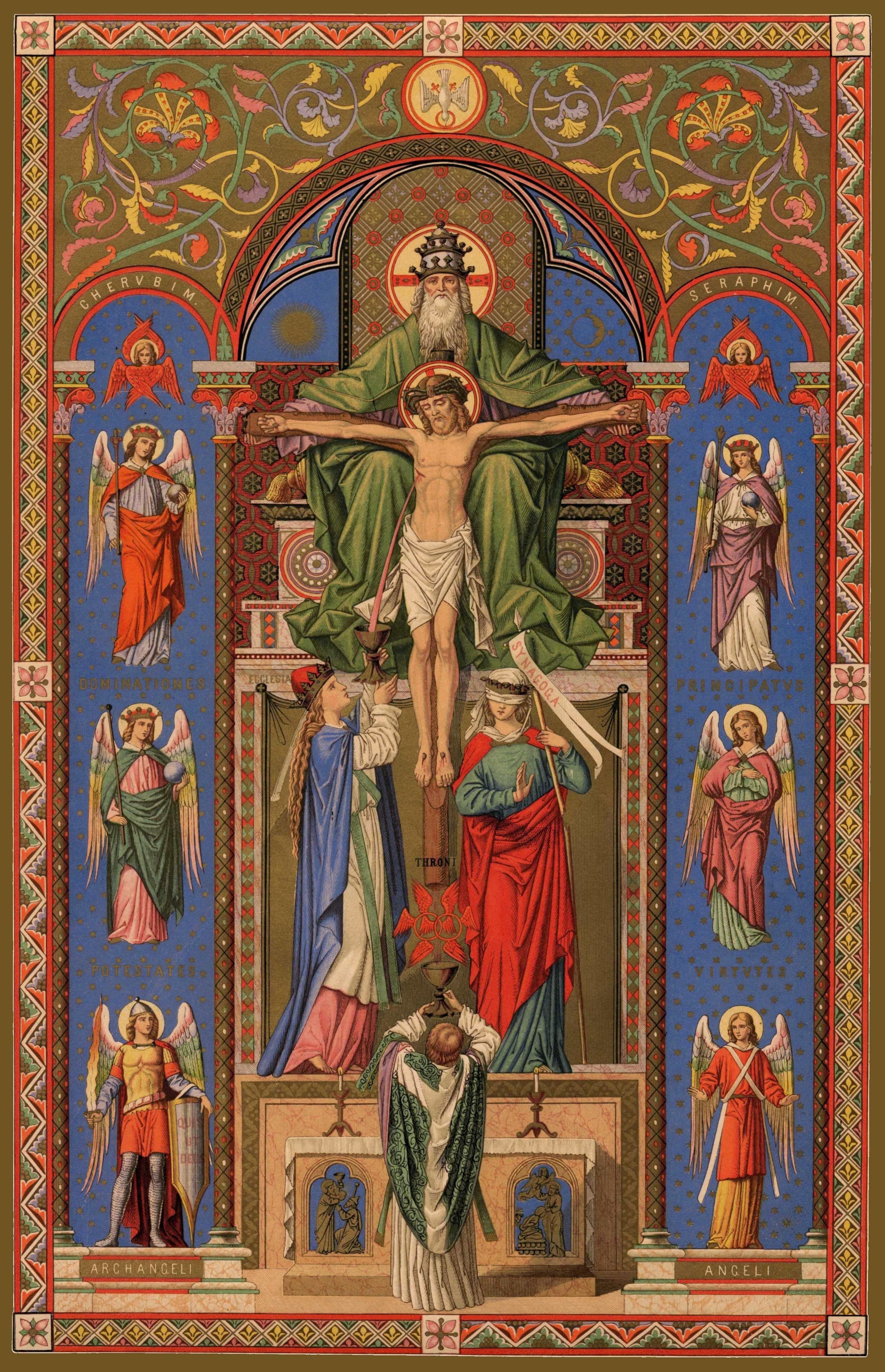 God the Father, who communicates in His Son on the altar, is represented by the priest who communicates at the holy Mass; for the priest sometimes takes the place of the Father, and sometimes that of the Son: here he represents the Father, who consumes and embraces His Son; he takes the place of the Father who commu- nicates in His Son, and who receives him into His bosom: and the kiss of peace which the priest gives to the deacon expresses to the people, by a figure which is coarser and more tangible, this communion of the Father in His Son, which the priest will express even better by communicating really in the host and thus embracing the Son of God, just as the Father embraces him within Himself. And it is this embrace of the Father with His Son that the priest means to express when he embraces the deacon while giving him the kiss of peace. (202)