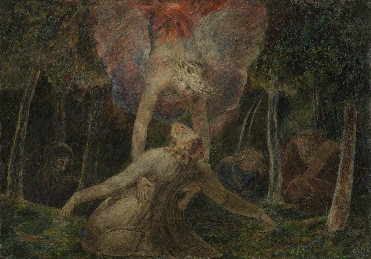 Visionary romantic poet and artist William Blake (1757–1827) painted “The Agony in the Garden” around the year 1800. He has placed the apostles deep in the shadows of the trees, their heads covered and bowed down, almost as if receding into the ground, as if merging with the irrational nature of the plants or the unliving nature of the earth.
