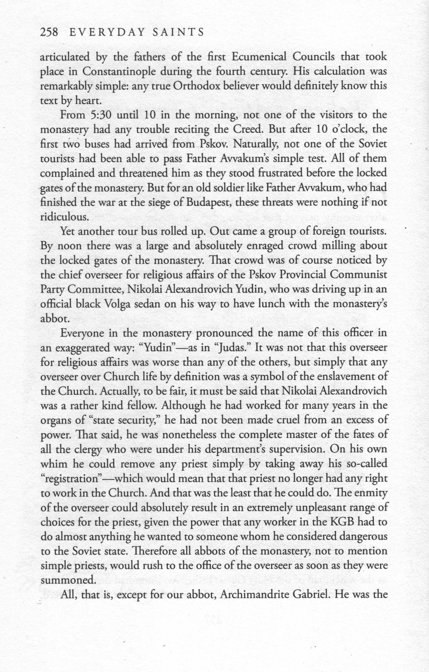 Today, in a spirit of rejoicing for this inestimable gift of divine assistance to the early Church in the midst of one of the worst crises that had afflicted and would continue to afflict her — the Arian controversy — I would like to share an absolutely delightful chapter from one of my favorite books to read aloud, Everyday Saints and Other Stories, edited by Metropolitan Tikhon Shevkunov (you can find out more about him at Inside the Vatican). Everyday Saints relates one amazing, miraculous, or hilarious story after another about the zealous faith and fortitude of Orthodox Christians during the Soviet period; we learn of countless ways in which they tricked or circumvented the officially atheistic regime. I realize that many have a low opinion of Russia and of the Russian Church, especially in recent years, but I would urge you to give this book, published in 2018, a chance to show you a different side — one that traditional Catholics in particular will easily relate to and take comfort in.