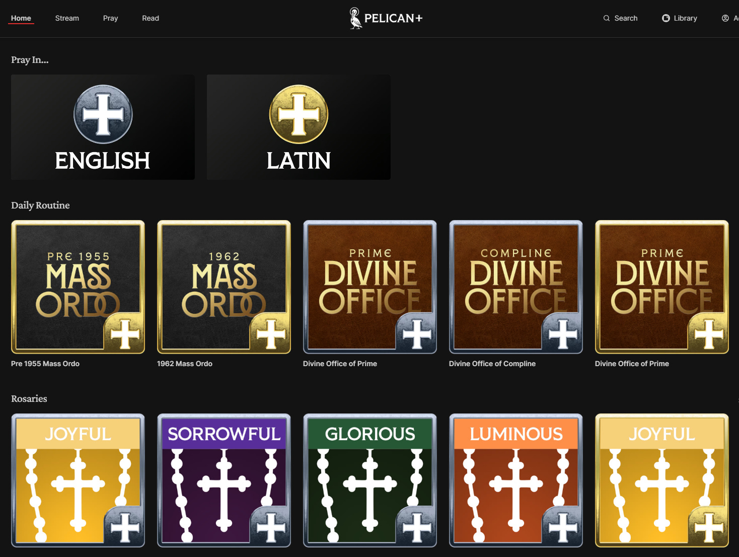 Rosaries recited in English and Latin by various Pelican+ contributors (I’ve just recorded the Rosary in Latin and will soon be doing a chanted version)