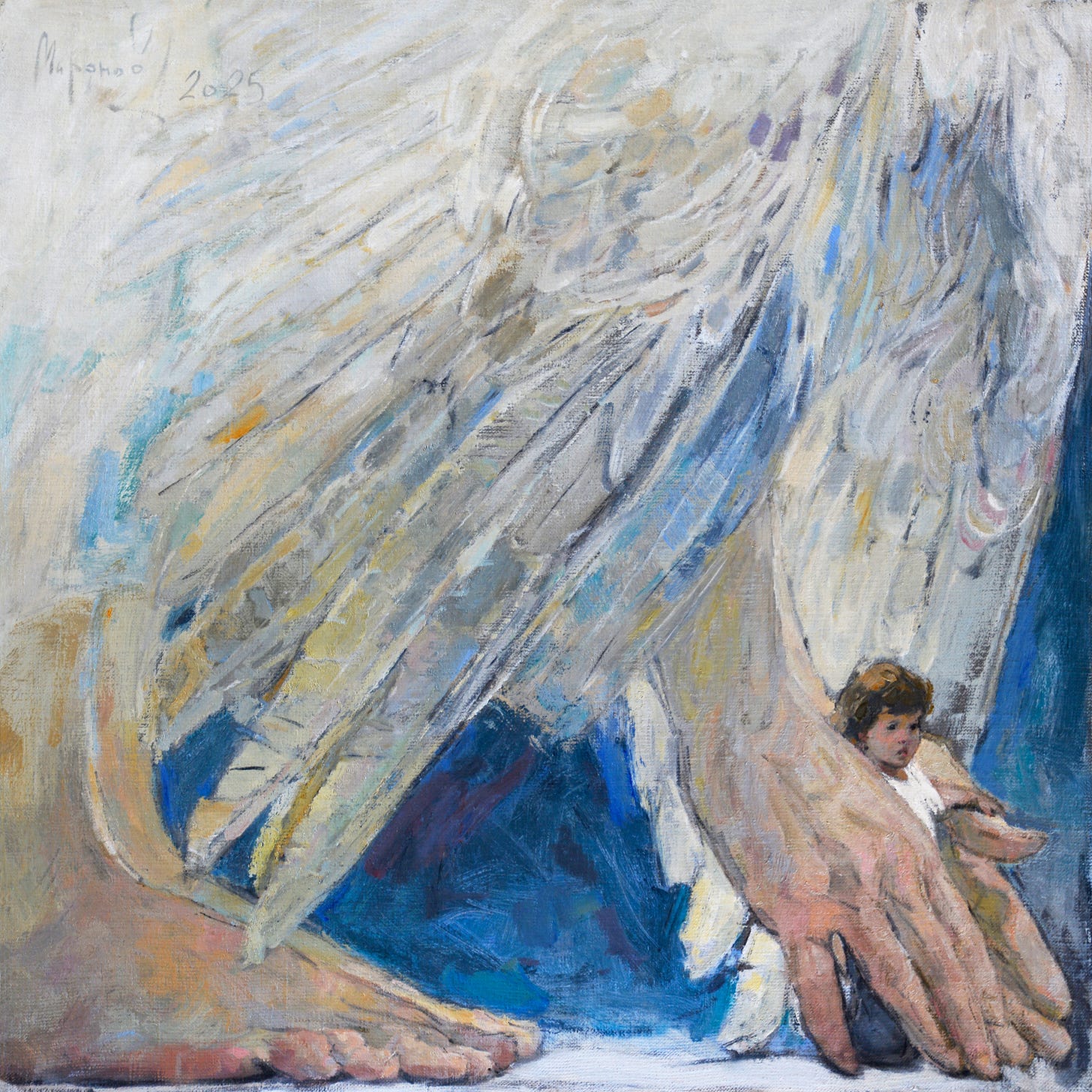 Re the postcript image of the "giant" angel carefully holding the child. I once listened to a talk by an exorcist who for purposes of brevity requested his guardian angel to assist a woman in whom the demon(s) has just manifested and was crushing her and his assistant's who were helping her until he arrived. She later remarked to him that she "saw his angel and he was HUGE"